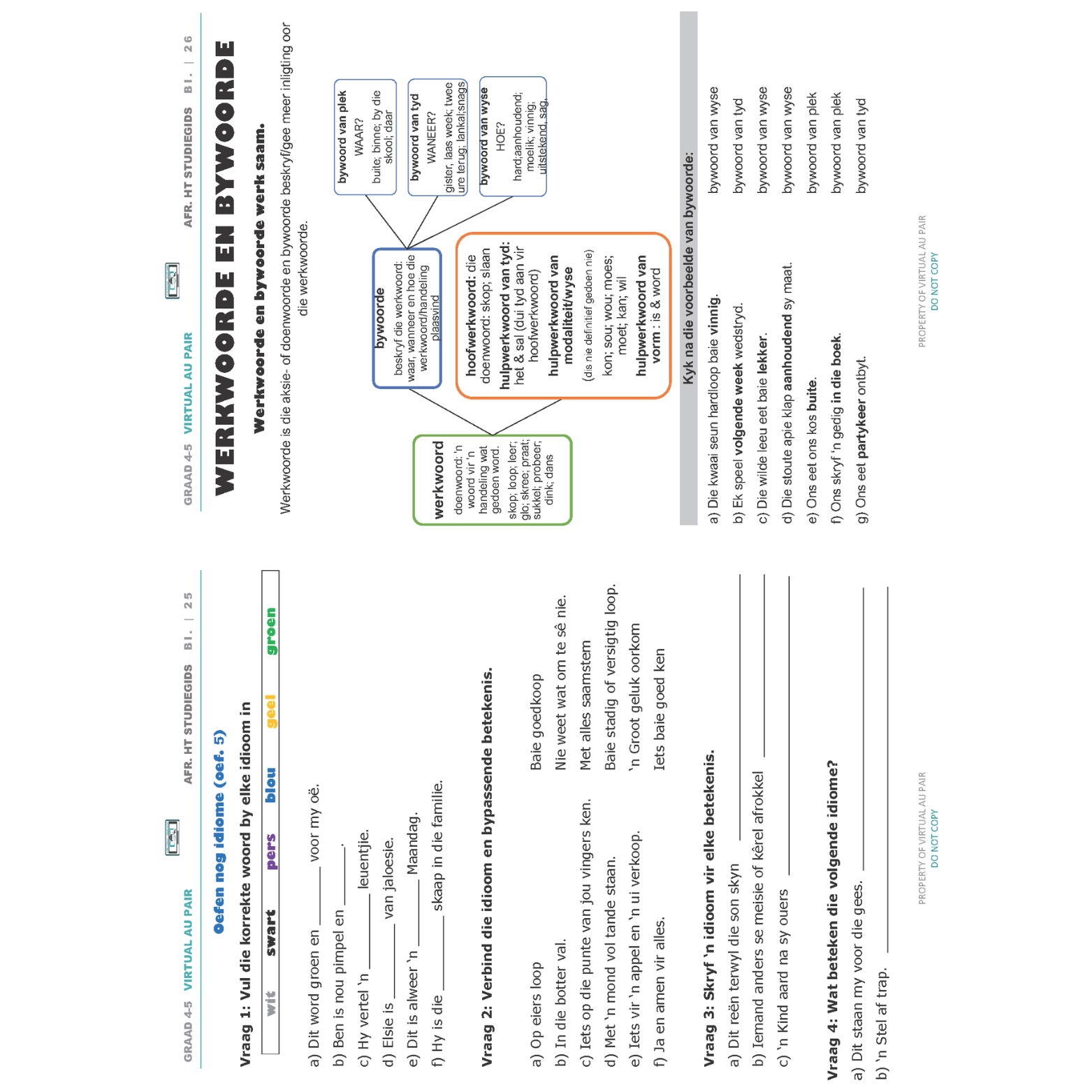 Gr.4-5 Afrikaans Huistaal Opsommingsboek (jaarlikse inhoud) totaal 74 bladsye