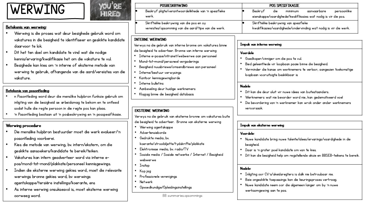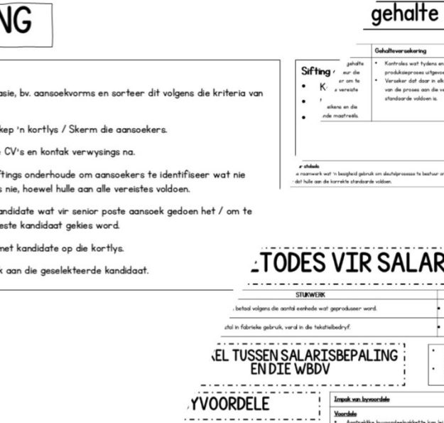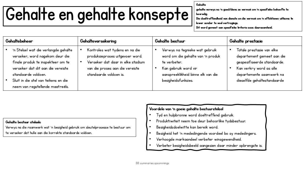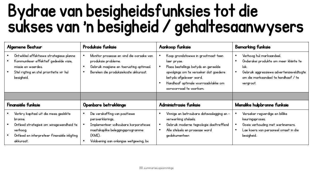 ‘n Opsomming van Besigheidsbedrywighede soos geassesseer in Besigheidstudies Gr 12 Vr 1.