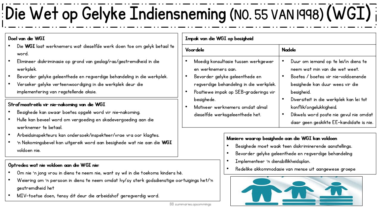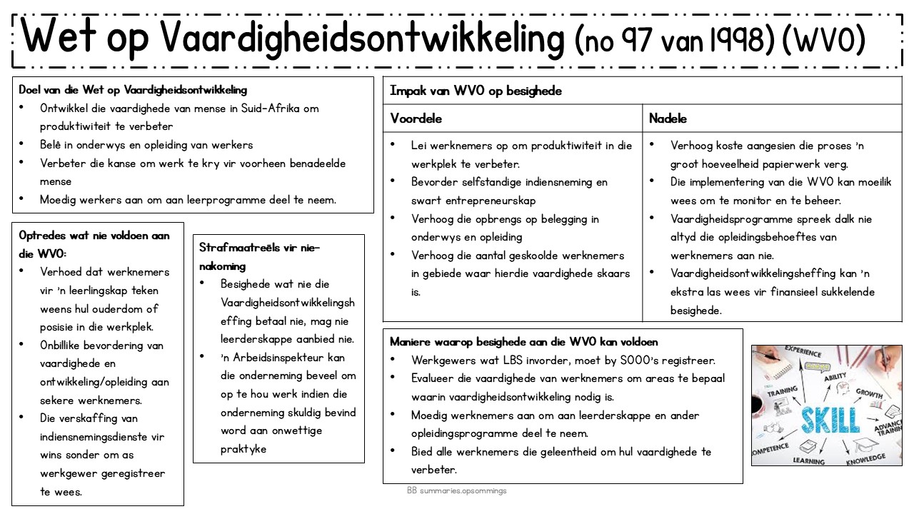 ‘n Opsomming van die volgende onderwerpe: