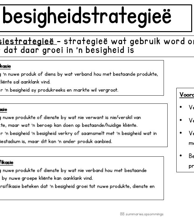 Besigheidstrategieë vorm deel van die hoofonderwerp Besigheidsomgewings soos geassesseer in Besigheidstudies Gr 12 Vr 1