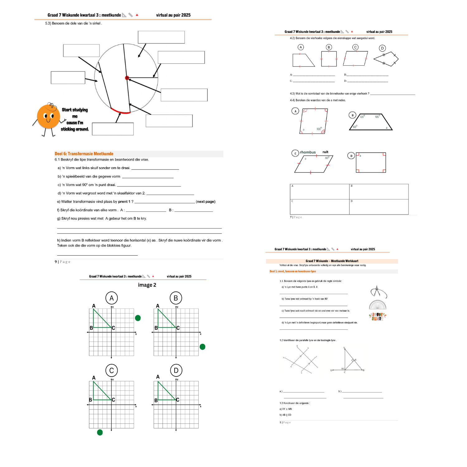 Graad 7 Wiskunde kwartaal 3 ATP | PDF oefenboek en memo sluit al die ATP meetkunde eenhede in :