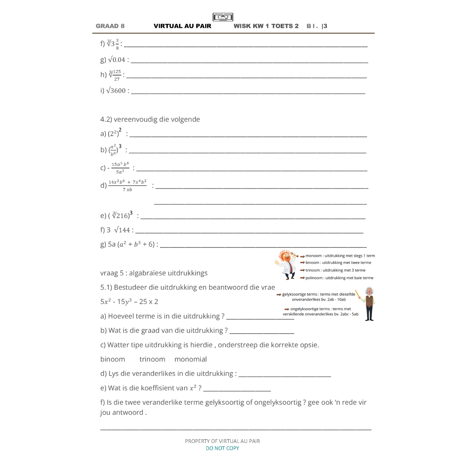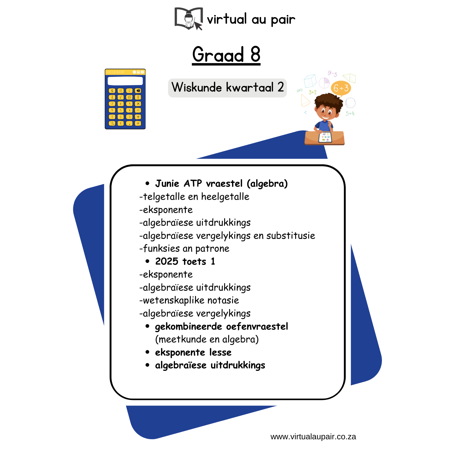 Graad 8 opsommings en oefentoetse kwartaal 1-4 in PDF formaat volgens die CAPS/KABV riglyne opgestel.