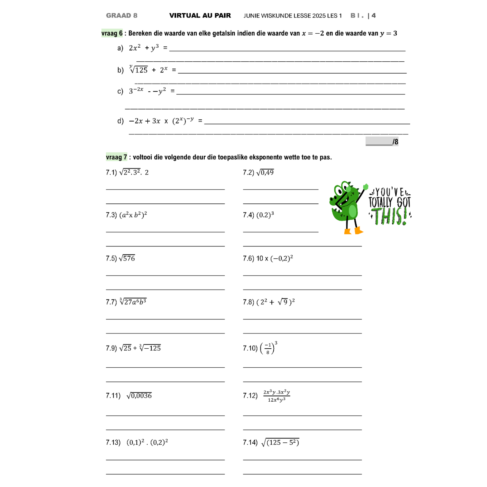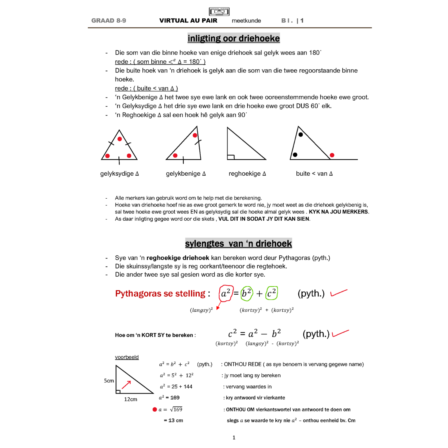 - gekombineerde oefenvraestel (meetkunde en algebra)
