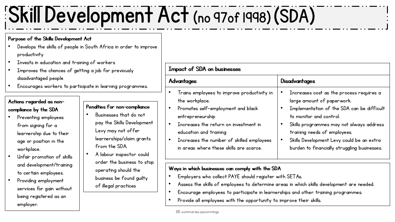 An all you need to know summary of the impact of recent legislation as assessed in Business Studies Grade 12 Paper 1.