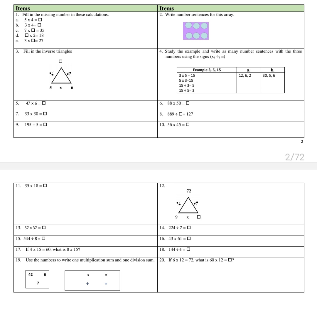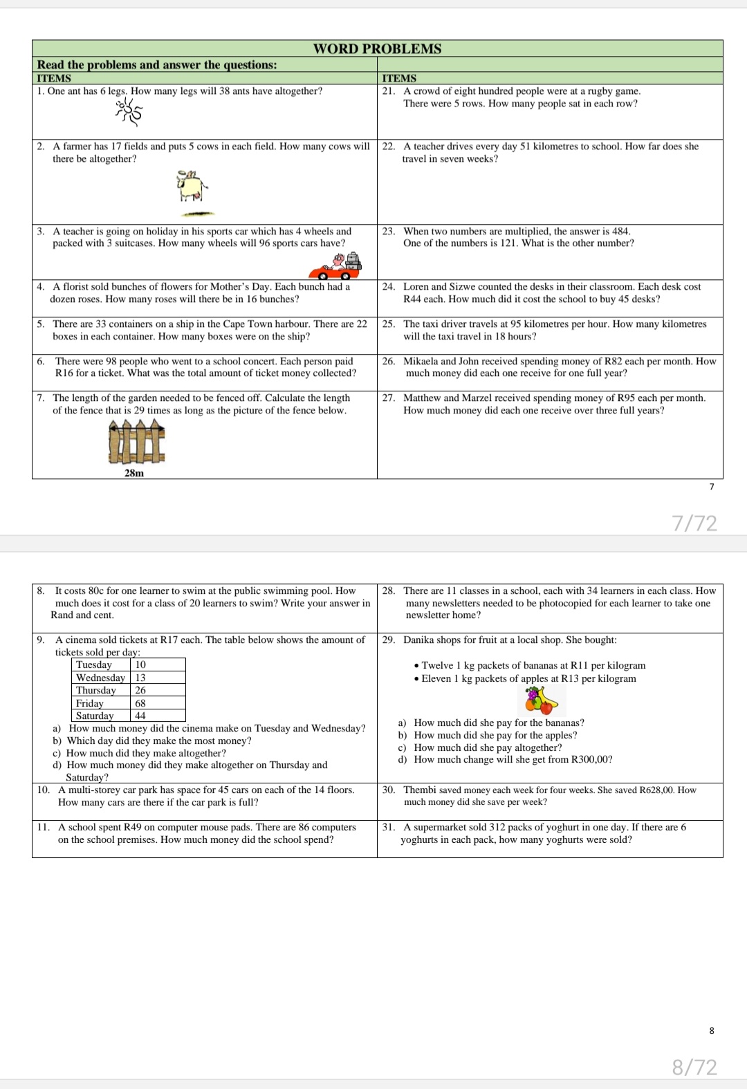 This is a digital document Grade 4 Mathematics with questions and answers covering different aspects of grade 4 mathematics. . School terms are not applicable , its just revision questions and answers on different aspects. Please leave a review we would love to hear your feedback.