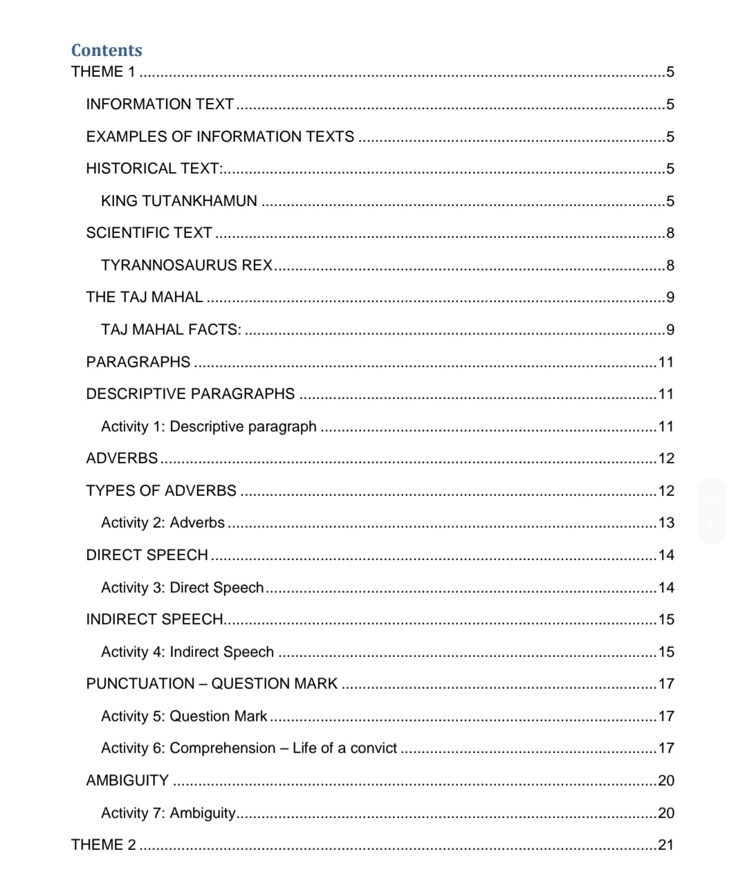 This document with 241 pages covers all the content of English in Grade 6 from term 1 to term 4