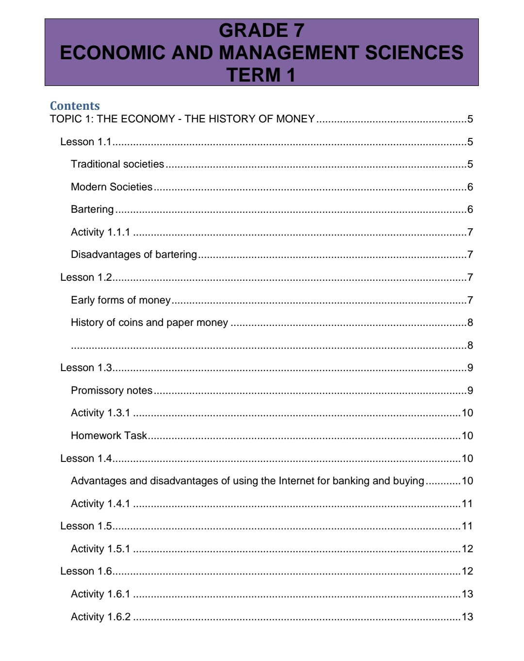 This document is a summary of Grade 7 EMS from Term 1 and 2 and this will help you understand the better and it has activities in between , the activities however do not have answers provided. Please check the content pages to know what is covered in the summary. Please leave a review.