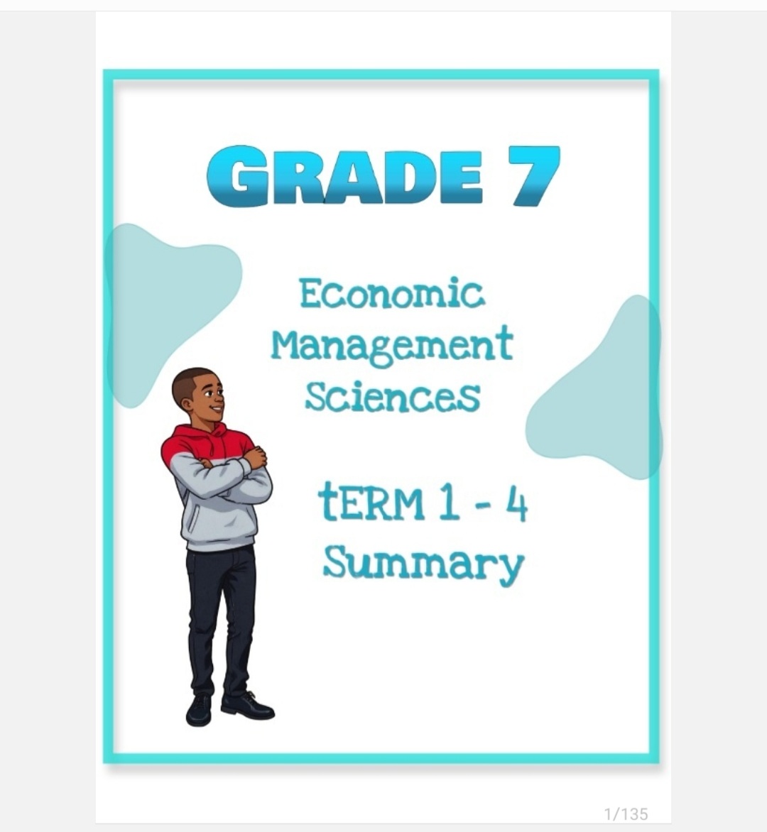 This document is a summary of grade 7 EMS from term 1 to term 4 and this will help you understand the better and it has activities in between , the activities however do not have answers provided. Please check the content pages to know what is covered in the summary. Please leave a review.