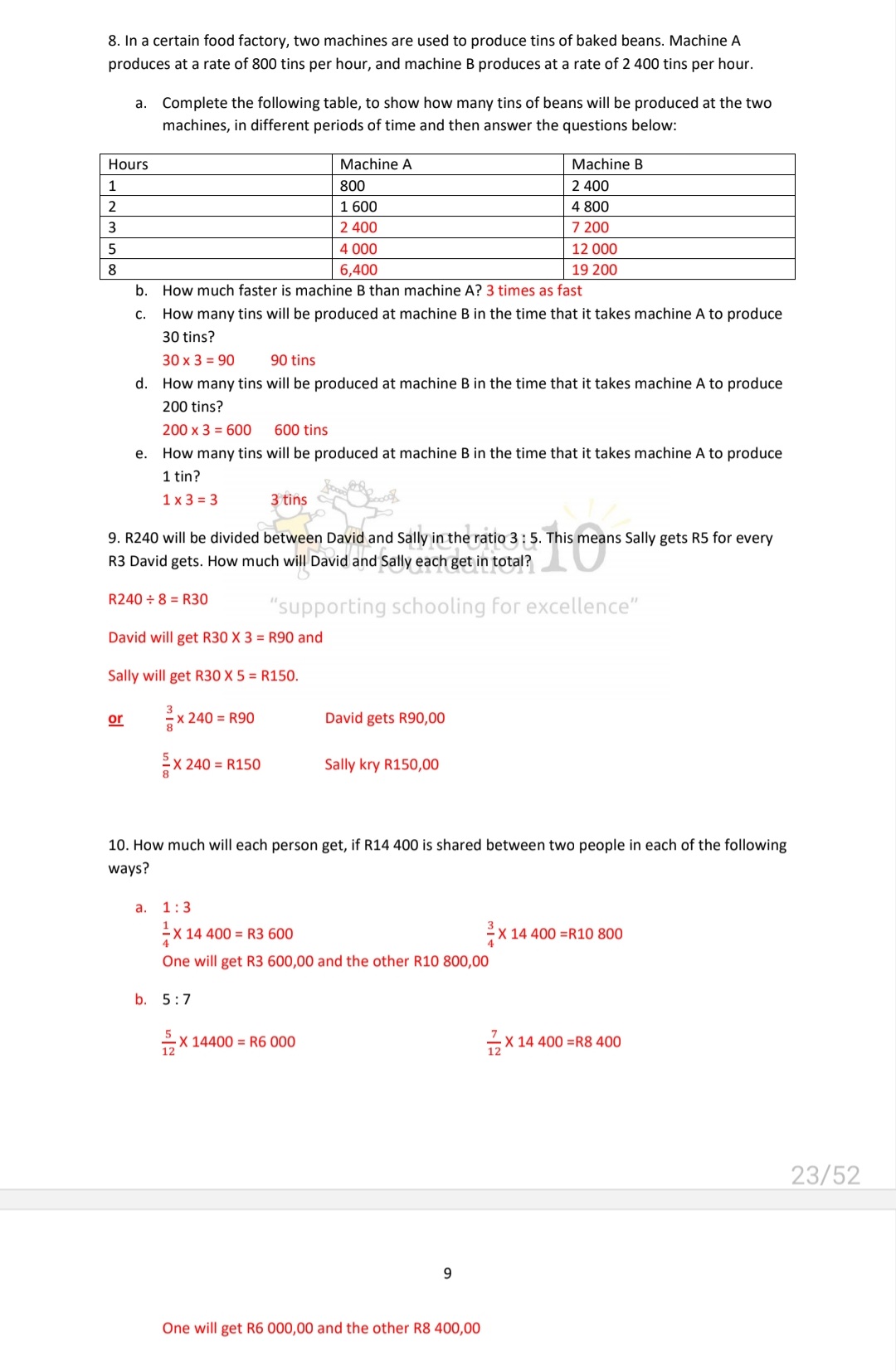 - Problem solving with percentages , decimals , common fractions